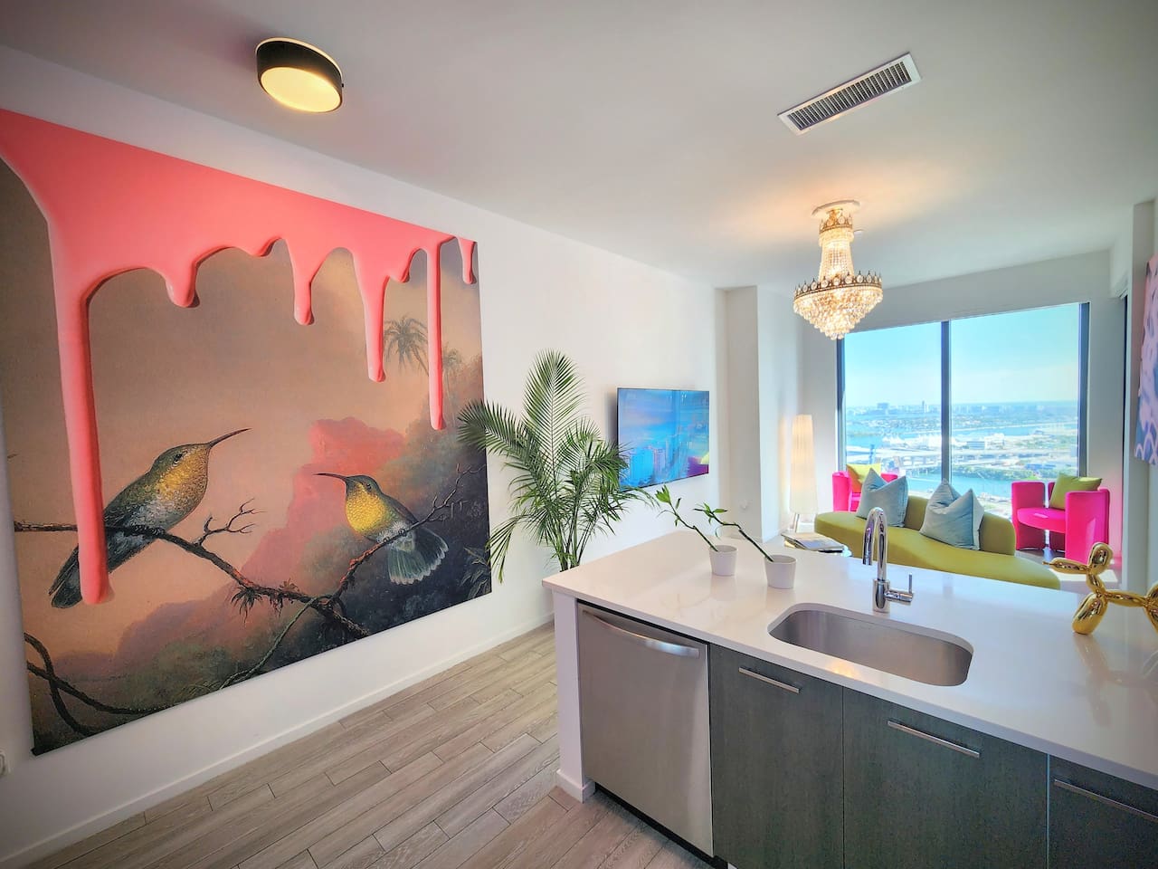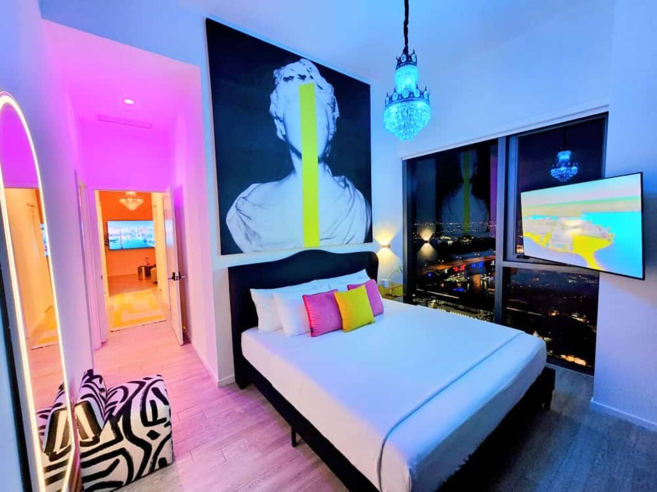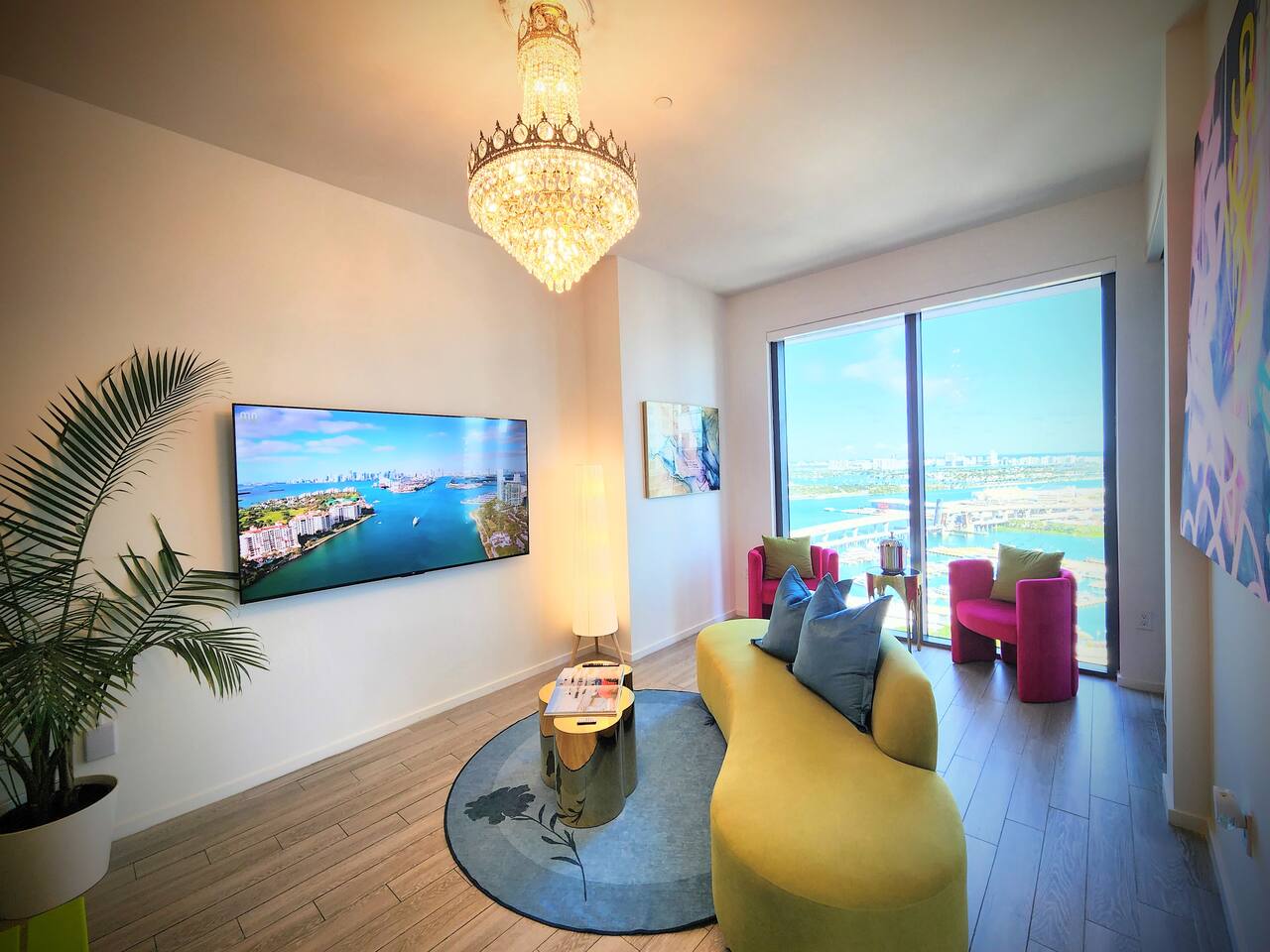 The Royal View PentHaus — Art. Design. Downtown Miami. Immerse yourself in Miami’s energy—while enjoying your own private, modern oasis. This Royal-inspired PentHaus is where bold art meets elevated comfort. 2 King Bedrooms • 2 Designer Bathrooms • Floor-to-ceiling skyline, ocean & pool views. A seamless open layout, 85” Smart TV, designer lighting, and chef’s kitchen create the perfect backdrop for content, cocktails, and conversation. Each bedroom features King beds, 55” Smart TVs, Alexa Echo Dots + walk-in closets. Both bathrooms have modern fixtures + large walk-in showers. Washer/dryer • Premium toiletries • Pool towels • Iron/steamer • Laundry essentials included. ⸻ Building Amenities • Rooftop + Resort Pool • Hot Tub • Grills + Outdoor dining terrace • 2-level Sundeck w/ City + Bay Views • Rooftop Games + Turf Lawn • Yoga deck + Fitness Center + Spin Room • On-site Dining + Coffee Bistro ⸻ Close To Everything 5 minutes → Brickell, Midtown, Wynwood, Design District 8 minutes → LoanDepot Park (Marlins Stadium) 15 minutes → South Beach & MIA Airport Walk to: • Julia & Henry’s • E11EVEN + Space • Brightline • Bayside + Kaseya Center • Sephora, Lululemon, Starbucks, CVS, 7-Eleven • Salons, bars, lounges + more ⸻ Your Hosts Rene + Elise are available 24/7 by phone or in person. Special requests? Just ask. We love to exceed expectations. This is where your Miami story begins.
