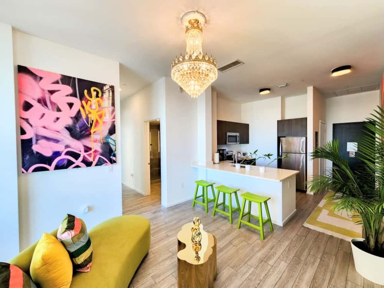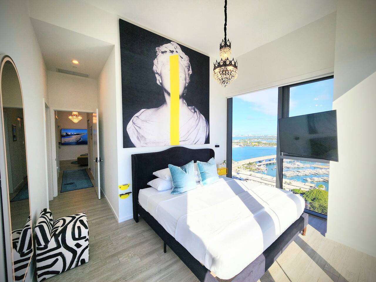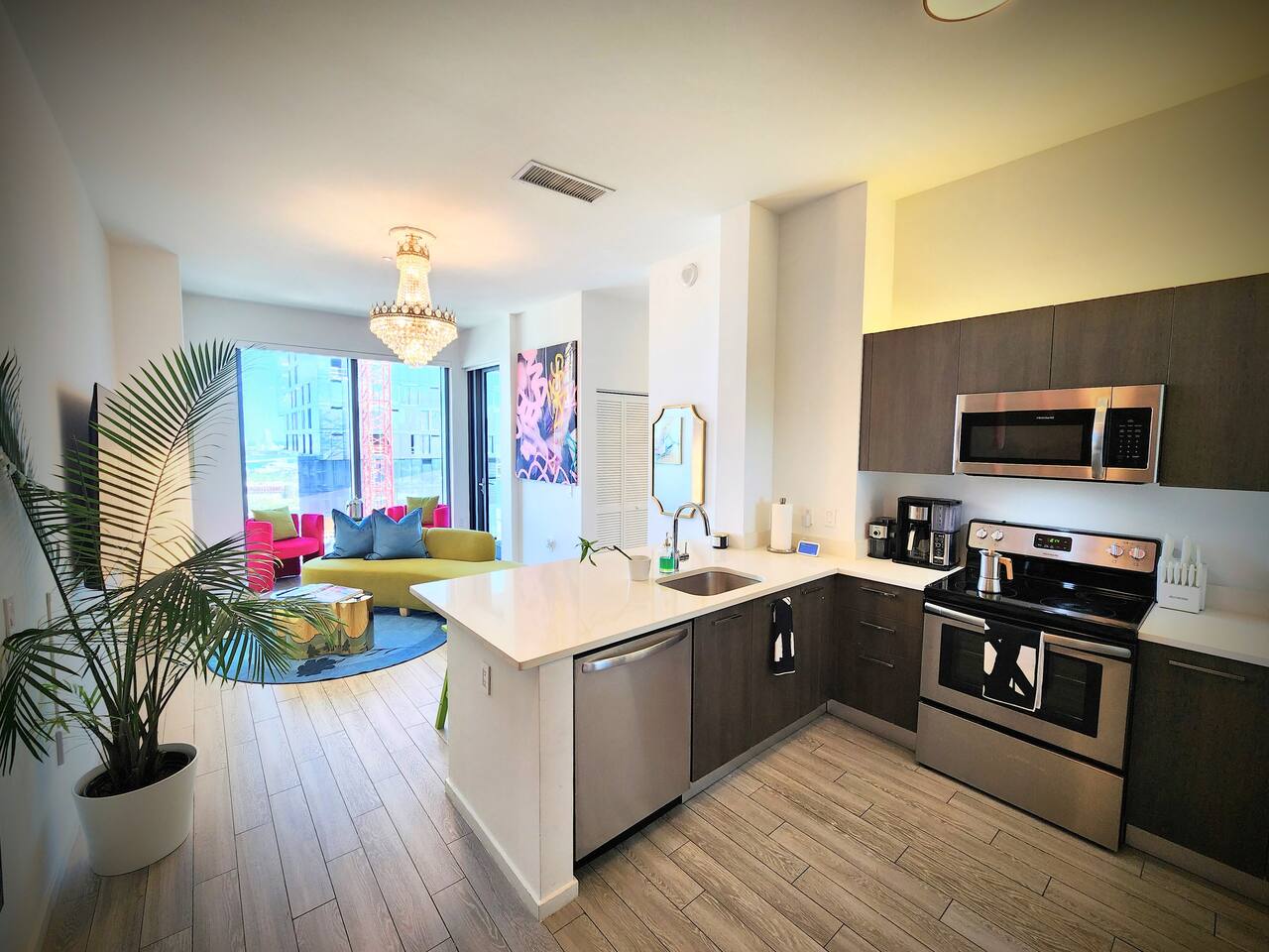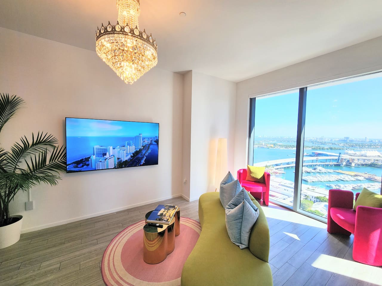 The Royal View PentHaus — Art. Design. Downtown Miami. Immerse yourself in Miami’s energy—while enjoying your own private, modern oasis. This Royal-inspired PentHaus is where bold art meets elevated comfort. 2 King Bedrooms • 2 Designer Bathrooms • Floor-to-ceiling skyline, ocean & pool views. A seamless open layout, 85” Smart TV, designer lighting, and chef’s kitchen create the perfect backdrop for content, cocktails, and conversation. Each bedroom features King beds, 55” Smart TVs, Alexa Echo Dots + walk-in closets. Both bathrooms have modern fixtures + large walk-in showers. Washer/dryer • Premium toiletries • Pool towels • Iron/steamer • Laundry essentials included. ⸻ Building Amenities • Rooftop + Resort Pool • Hot Tub • Grills + Outdoor dining terrace • 2-level Sundeck w/ City + Bay Views • Rooftop Games + Turf Lawn • Yoga deck + Fitness Center + Spin Room • On-site Dining + Coffee Bistro ⸻ Close To Everything 5 minutes → Brickell, Midtown, Wynwood, Design District 8 minutes → LoanDepot Park (Marlins Stadium) 15 minutes → South Beach & MIA Airport Walk to: • Julia & Henry’s • E11EVEN + Space • Brightline • Bayside + Kaseya Center • Sephora, Lululemon, Starbucks, CVS, 7-Eleven • Salons, bars, lounges + more ⸻ Your Hosts Rene + Elise are available 24/7 by phone or in person. Special requests? Just ask. We love to exceed expectations. This is where your Miami story begins.