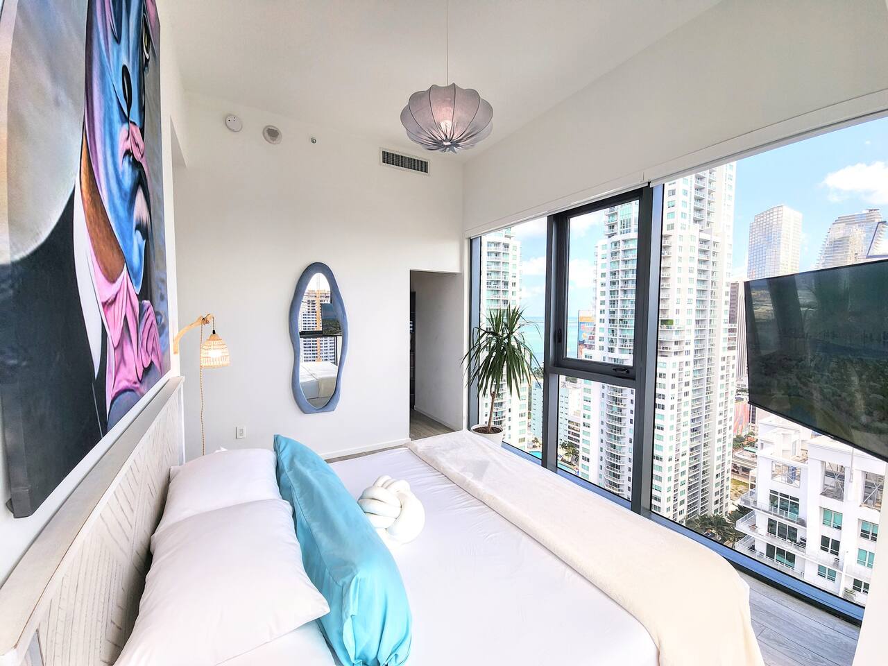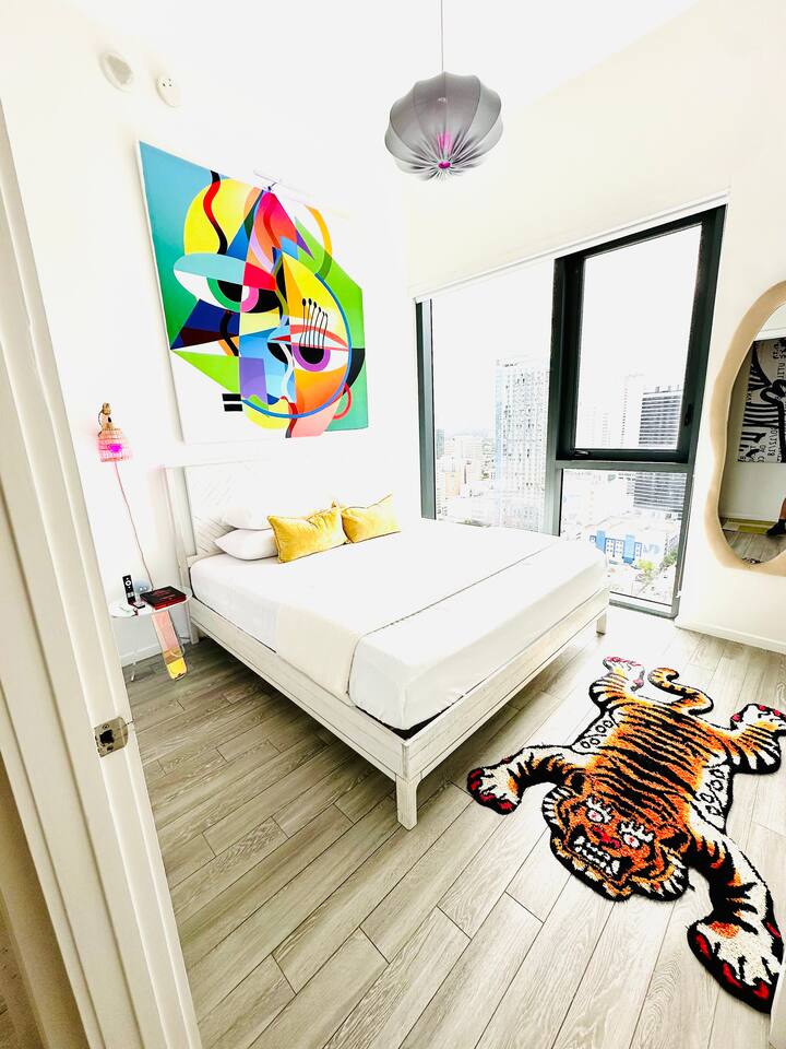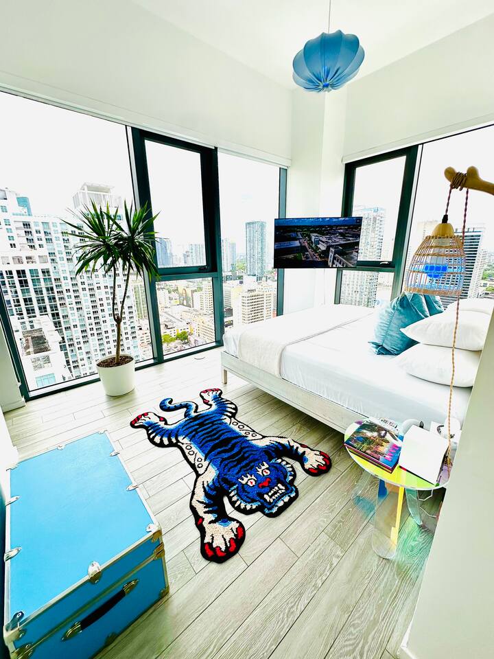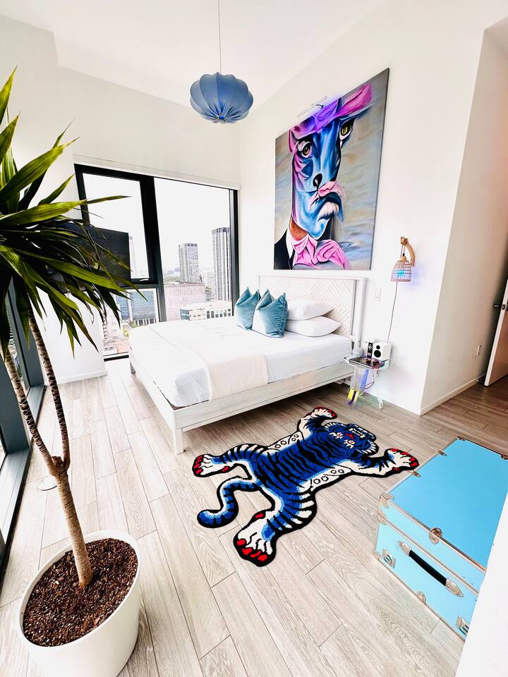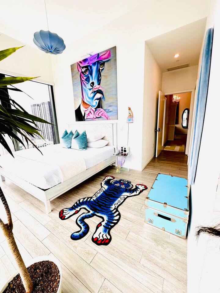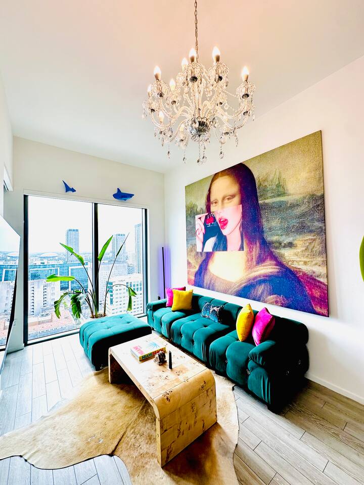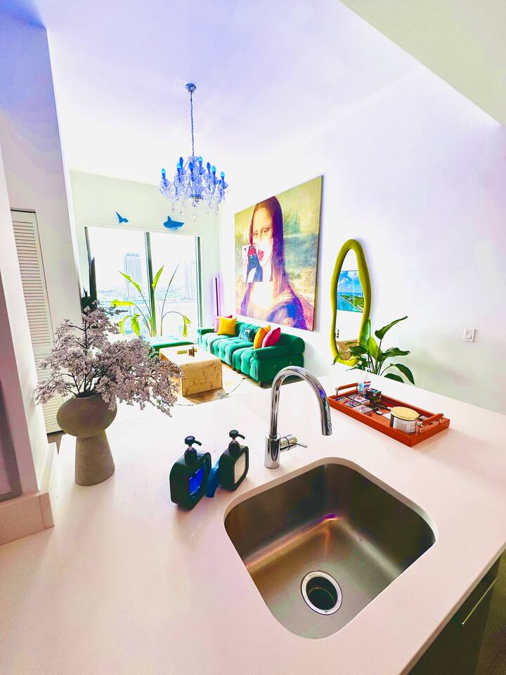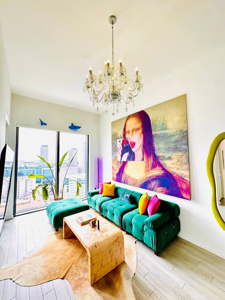 ⭐️ Downtown Miami with Pool + Parking Picasso-inspired 2BD/2BA PentHaus, is a gallery in the sky w/ floor-to-ceiling ocean, skyline & pool views, with BlackOut shades. Designed for creators, design lovers + elevated travelers. Every corner is a content backdrop. Steps to world-class dining, shopping + nightlife. Minutes to Bayfront Park, Brickell, Wynwood, Midtown, Design District, South Beach + MIA. Resort-style amenities, gym, pool + secure onsite parking. This is Miami life—elevated
