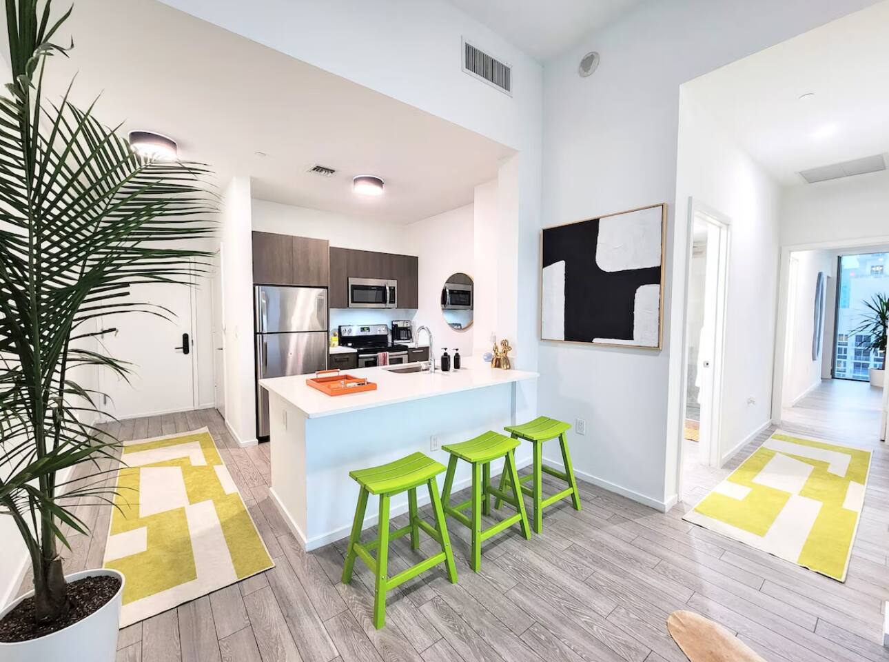 House Rules – Please Read Before Booking We kindly ask that all guests respect the following guidelines to help ensure a safe, comfortable, and enjoyable stay for everyone. ⸻ 🚭 No Smoking Indoors Smoking is strictly prohibited inside the apartment. You may smoke ONLY on the balcony, and must use the ashtray provided. 🚫 Do not throw cigarettes or any items over the balcony, and please do not extinguish cigarettes on the balcony floors. ⸻ 🎉 No Parties / Noise Policy • Absolutely no loud parties. Small, respectful social gatherings are welcome. • Quiet hours are from 10:00 PM to 7:00 AM. Please keep music and all noise to a minimum during these hours to respect our neighbors. ⸻ 🏊 Pool Area Rules • No glassware at the pool. We’ve provided plastic cups for your convenience. • Please use the provided pool towels instead of bath towels when visiting the pool. ⸻ 🔑 Lost Keys / Lockouts • Please do not lose any keys. There is a $150 replacement fee per lost key. • Lockouts will result in a $250 lockout fee. • If you are locked out or lose your key, contact your host immediately—we are available 24/7. ⸻ 📞 Communication All communication regarding your stay should go directly through your host. We’re here around the clock to assist with anything you need—questions, concerns, or special requests. Your comfort and happiness are our priority! ⸻ 🛠 Breakages or Issues If something breaks or isn’t working properly, please let us know right away so we can take care of it promptly. ⸻ 🐾 No Pets Allowed We kindly ask that no pets be brought into the apartment. ⚠️ A $500 fee will apply if this rule is not followed. Service Animals & ESAs: Of course, service animals are always welcome. If you’re traveling with a Service Animal or ESA, please provide proper documentation at the time of booking. ⸻ 🫶 Treat Our Home Like Your Own We’ve worked hard to create a beautiful, comfortable space for your stay. Please treat the apartment with care and respect, and enjoy every moment of your time here.