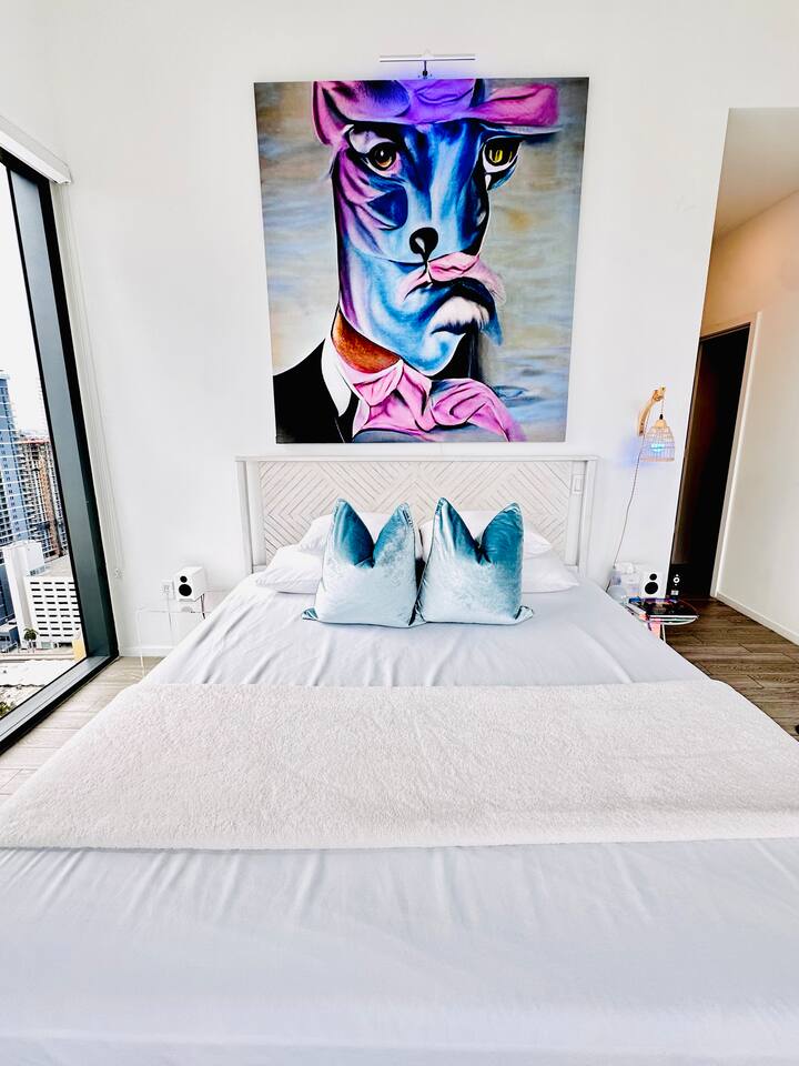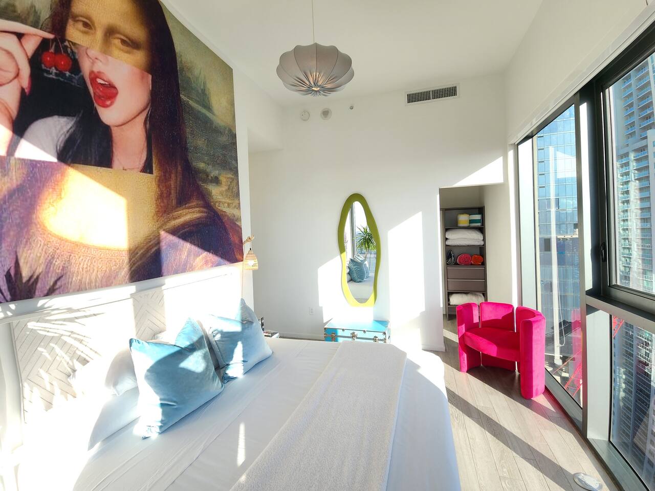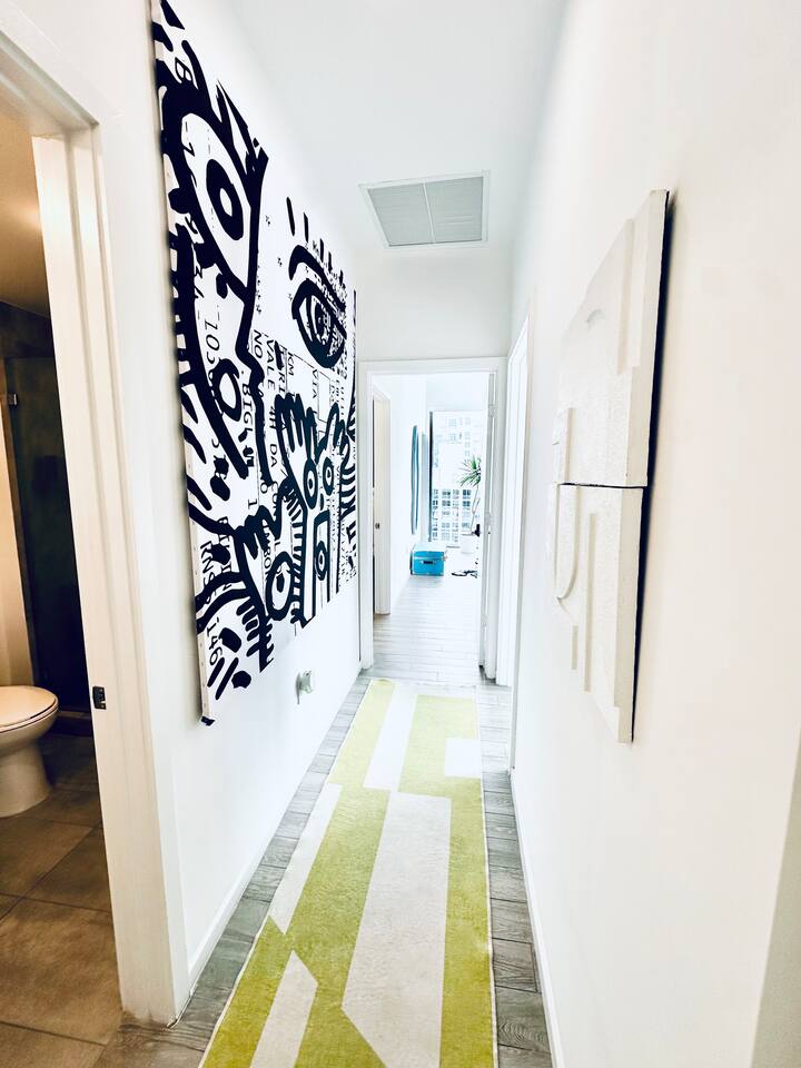 Picasso’s PentHaus — Art. Design. Downtown Miami. Immerse yourself in Miami’s energy—while enjoying your own private, modern oasis. This Picasso-inspired PentHaus is where bold art meets elevated comfort. 2 King Bedrooms • 2 Designer Bathrooms • Floor-to-ceiling ocean & skyline views. A seamless open layout, 75” Smart TV, designer lighting, and chef’s kitchen create the perfect backdrop for content, cocktails, and conversation. Each bedroom features King beds, 65” Smart TVs, Alexa Echo Dots + walk-in closets. Both bathrooms have modern fixtures + large walk-in showers. Washer/dryer • Premium toiletries • Pool towels • Iron/steamer • Laundry essentials included. ⸻ Building Amenities • Rooftop + Resort Pool • Hot Tub • Grills + Outdoor dining terrace • 2-level Sundeck w/ City + Bay Views • Rooftop Games + Turf Lawn • Yoga deck + Fitness Center + Spin Room • On-site Dining + Coffee Bistro ⸻ Close To Everything 5 minutes → Brickell, Midtown, Wynwood, Design District 8 minutes → LoanDepot Park (Marlins Stadium) 15 minutes → South Beach & MIA Airport Walk to: • Julia & Henry’s • E11EVEN + Space • Brightline • Bayside + Kaseya Center • Sephora, Lululemon, Starbucks, CVS, 7-Eleven • Salons, bars, lounges + more ⸻ Your Hosts Rene + Elise are available 24/7 by phone or in person. Special requests? Just ask. We love to exceed expectations. This is where your Miami story begins.